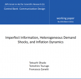 9:15-10:15 奥田達志(日本銀行)“Consumers’ Price Beliefs, Central Bank Communication, and Inflation Dynamics” スライド 10:15-11:15 新谷元嗣(東京大学)“Forecasting Japanese Inflation with a News-Based Leading Indicator of Economic Activities” 11:25-12:25 中村史一(日本銀行)“Households’ Income, Portfolio Choice, and the Heterogeneous Consumption Response to Monetary Policy Shocks” 13:25-14:25 藤木 裕(中央大学)“Who Needs Guidance from a Financial Adviser? Japanese Survey Evidence” 14:25-15:25 古賀麻衣子(日本銀行)“Households’ Liquidity Constraint, Optimal Attention Allocation, and Inflation Expectations” 15:35-16:35 細野 薫(学習院大学)“Dynamic Productivity Decomposition with Allocative Efficiency” スライド 16:35-17:25 泉 隆一朗(ウェズリアン大学)“Opacity: Insurance and Fragility” 17:25-18:15 水野貴之(国立情報学研究所) “Visualizing hidden economic influence of gover...